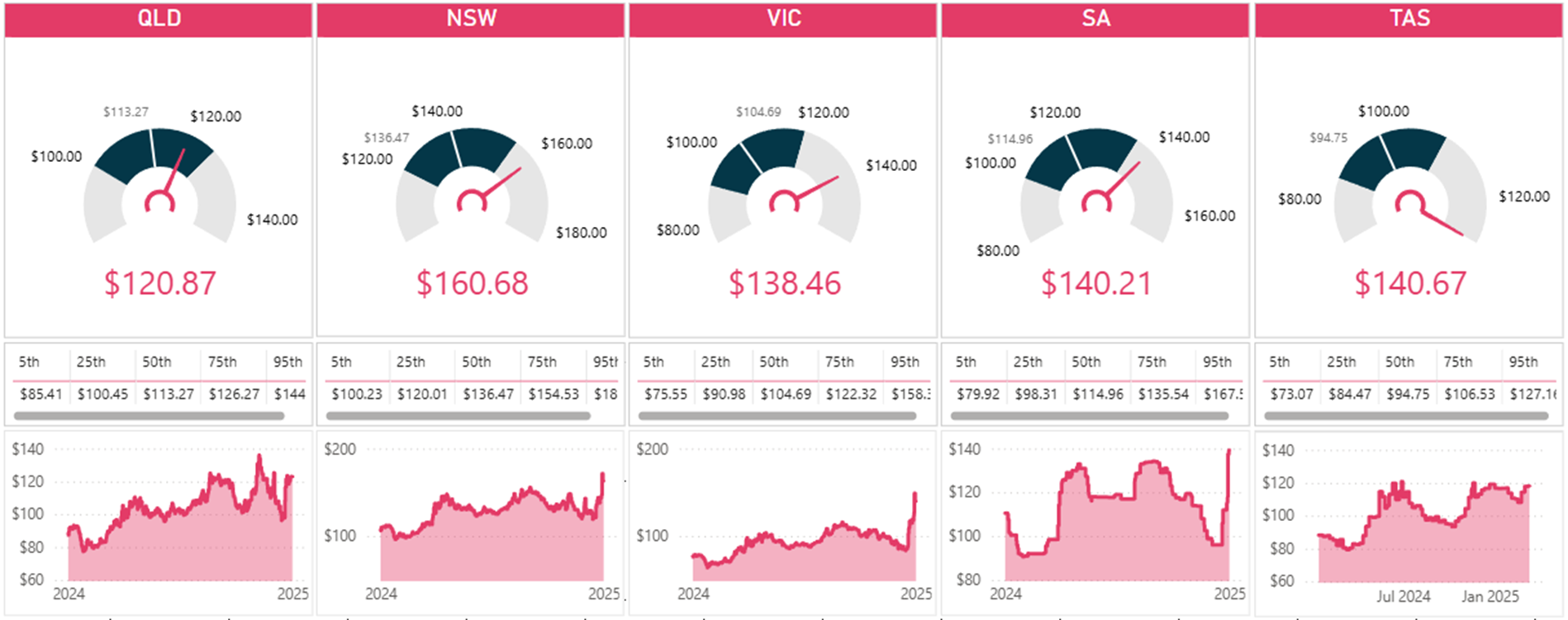 - TAS averaged $109.26/MWh and was the second highest on record, just behind the record FY-22/23 of $111.98/MWh