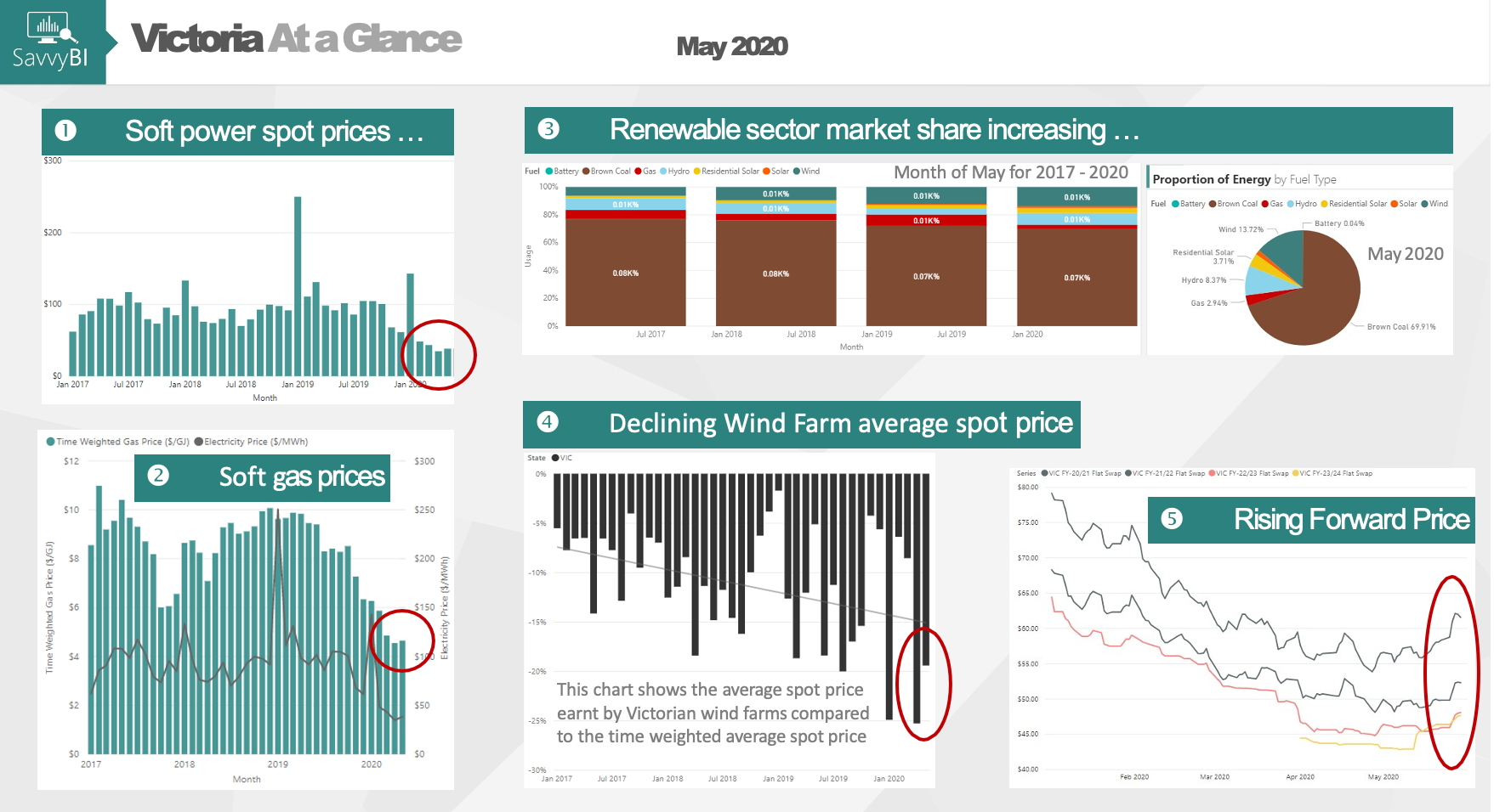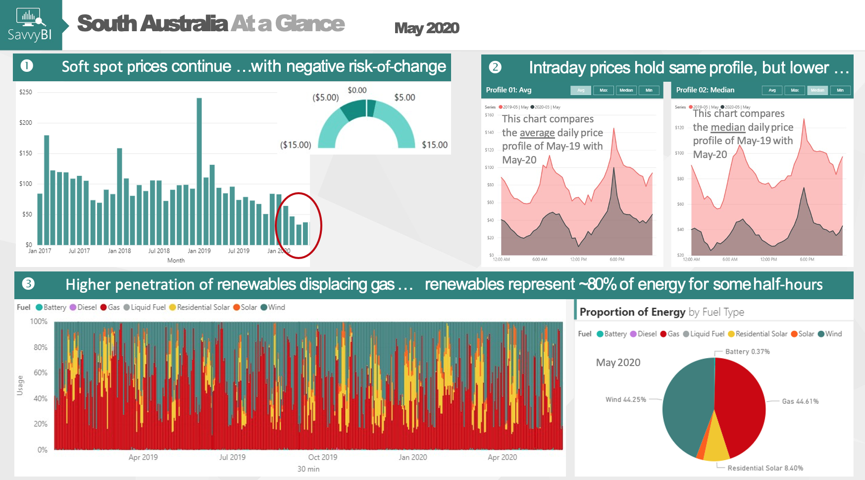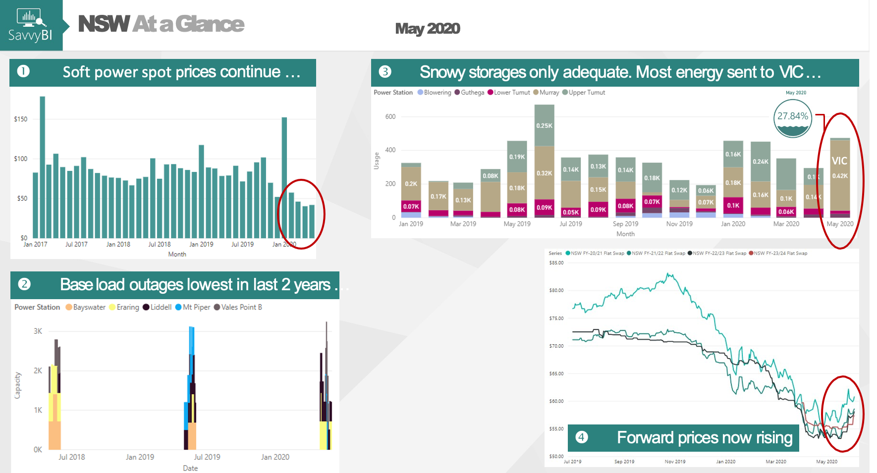 The average price for May this year was on average, half the average spot price of the previous three years for across all regions. NSW had smallest increase compared to the previous month but remains the most expensive power price at $42/MWh. VIC and SA saw increases of around 10% compared to the previous month, with average spot prices around