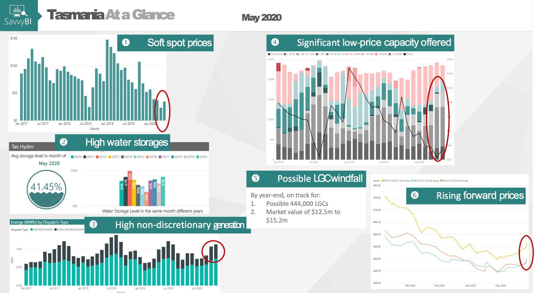 - Hydro Tasmania’s water storage increased over the month, despite an increase in dispatched generation during the month