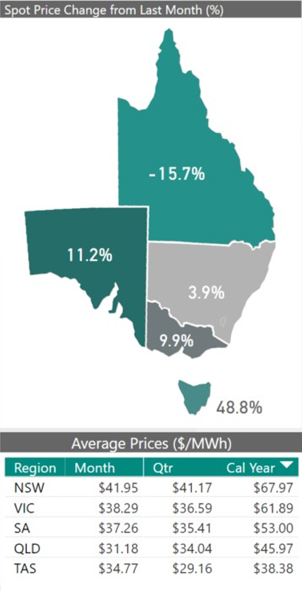 $38/MWh. Tasmania saw the largest rally in the spot price, up almost 50% from last months historical low of
