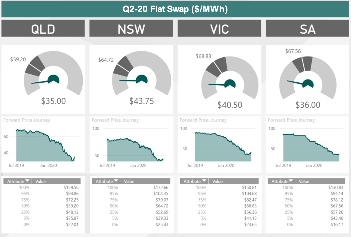 The dials to the right compare the current Q2-20 forward price against our spot forecast prepared in Q1-20. All regions are tracking in the lowest quartile of our spot forecast.