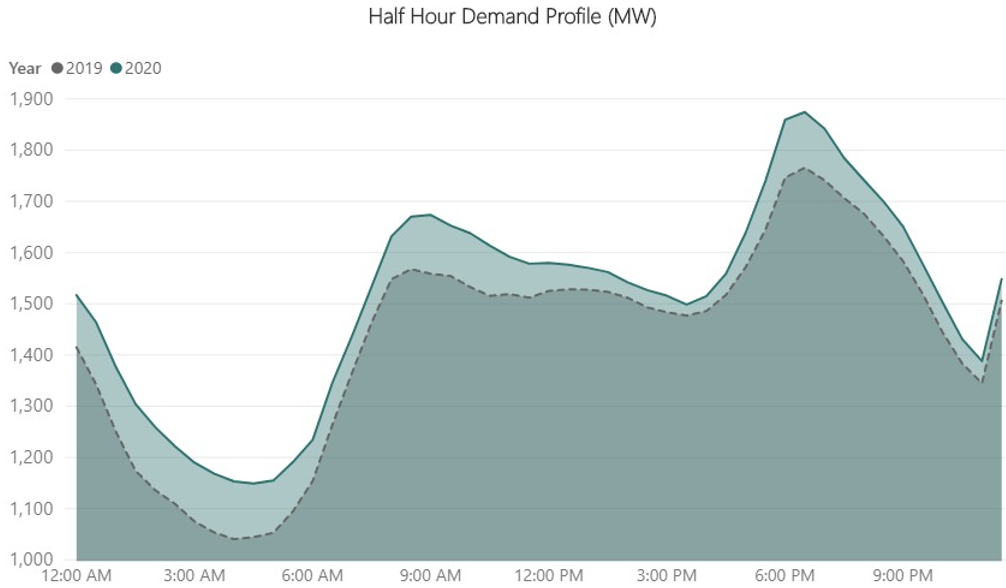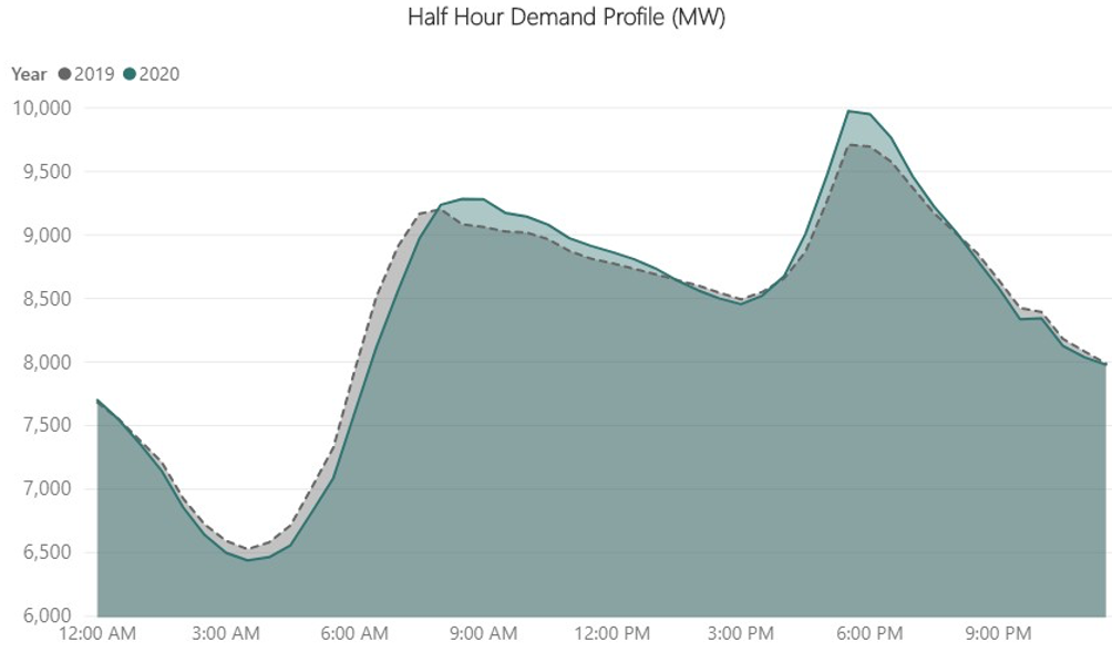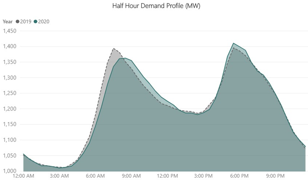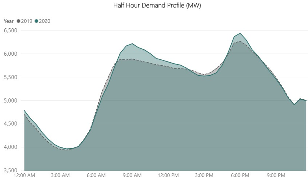 Last month, we observed it appeared COVID-19 was impacting the morning peak demand, causing the critical peak to occur slightly later. Our hypothesis was supported by the impact of home office working, and less travellers on electrified public transport.